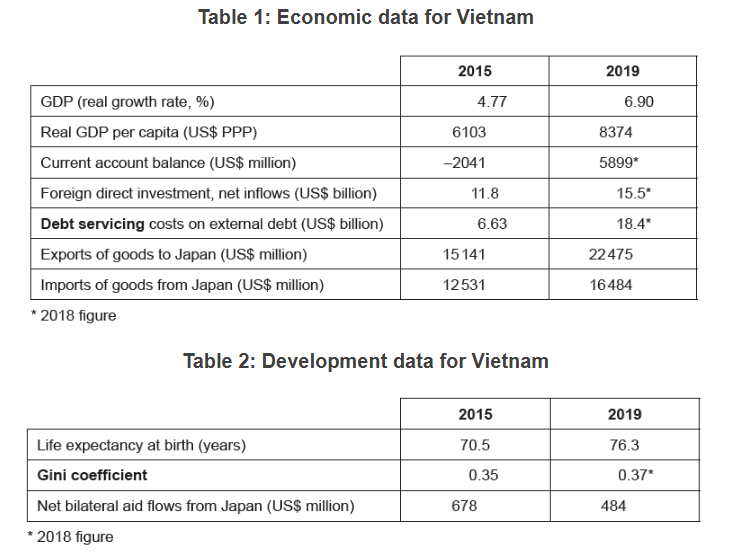 - Japanese FDI also results in Japanese aid directed at required infrastructure. This improves Vietnam’s economic capacity (Table 2 and Text A, paragraph [5])