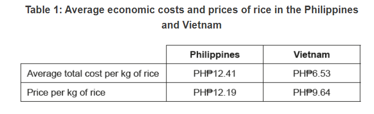 - Eliminating the quota on rice aims to make the rice market more competitive, which could reduce the price of rice by as much as 7 Philippine pesos (PH₱) per kilogram (kg). The National Economic and Development Authority has estimated that lower rice prices could save Filipino households as much as PH₱2362 per year. However, if the rice quota is eliminated, economists have warned that the government must prepare local rice producers so that they can either compete with rice imports or move to producing other crops. “Currently Filipino farmers cannot compete with Vietnamese farmers who may enjoy economies of scale” declared one economist. “The solution is to bring down the cost of production of rice.”
