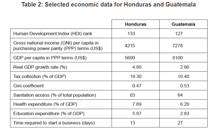 Economic development in Honduras and Guatemala