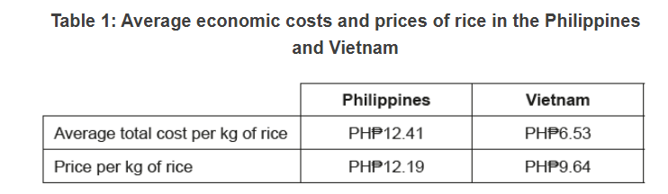 - Eliminating the quota on rice aims to make the rice market more competitive, which could reduce the price of rice by as much as 7 Philippine pesos (PH₱) per kilogram (kg). The National Economic and Development Authority has estimated that lower rice prices could save Filipino households as much as PH₱2362 per year. However, if the rice quota is eliminated, economists have warned that the government must prepare local rice producers so that they can either compete with rice imports or move to producing other crops. “Currently Filipino farmers cannot compete with Vietnamese farmers who may enjoy economies of scale” declared one economist. “The solution is to bring down the cost of production of rice.”