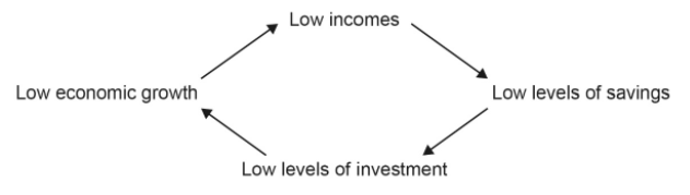 - low incomes lead to low saving which leads to low investment which leads to low growth which leads to low income