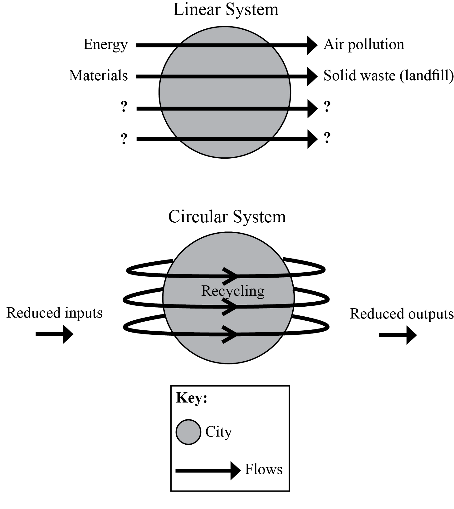 The diagram shows two contrasting city systems.