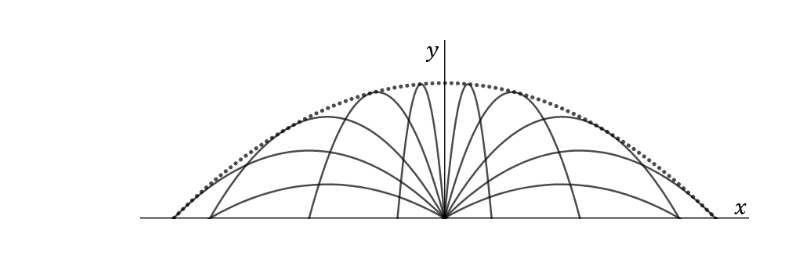 As the ladder slides, an envelope curve appears. The ladder is always tangent to the envelope curve.
