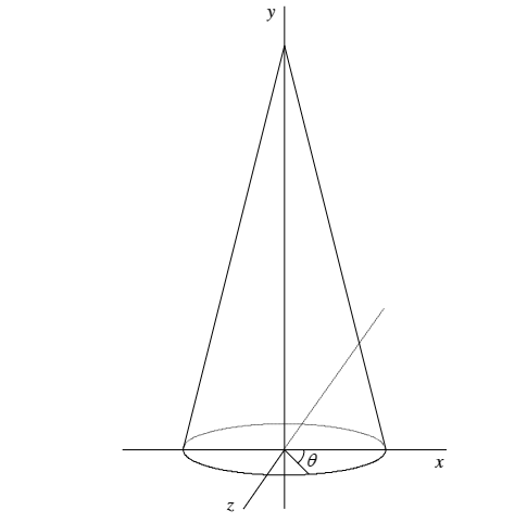 (a) General point on base permimeter is $(\cos \theta, 0, \sin \theta)$.