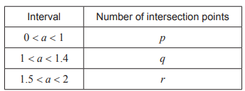 Assign the number of intersection points to \( p \), \( q \), and \( r \) respectively. [3]