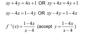 Thus, \( f^{-1}(x) = \frac{1 – 4x}{x – 4} \). (A1 for final answer)