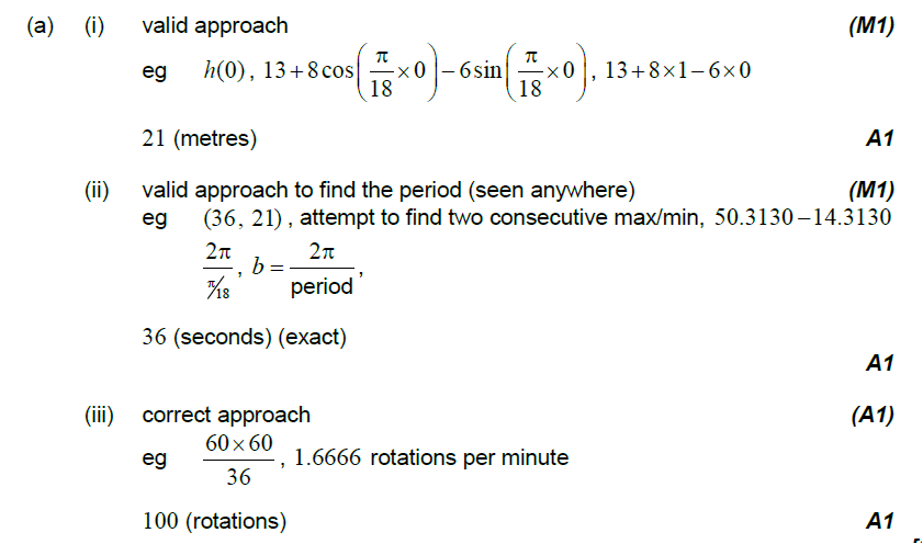 (iii) Hence find the number of rotations the water wheel makes in one hour. [6]