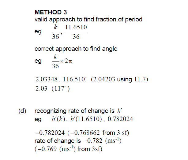 e.g. \(h'(k)\), \(h'(11.6510)\), \(0.782024\) (A1).