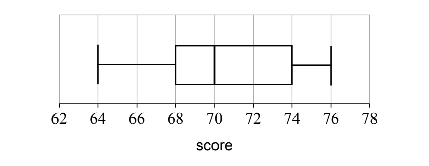 \(IQR = Q_3 – Q_1 = 74 – 68 = 6\)