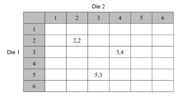 • SL 4.6: Use of tables of outcomes to calculate probabilities — Part b, e