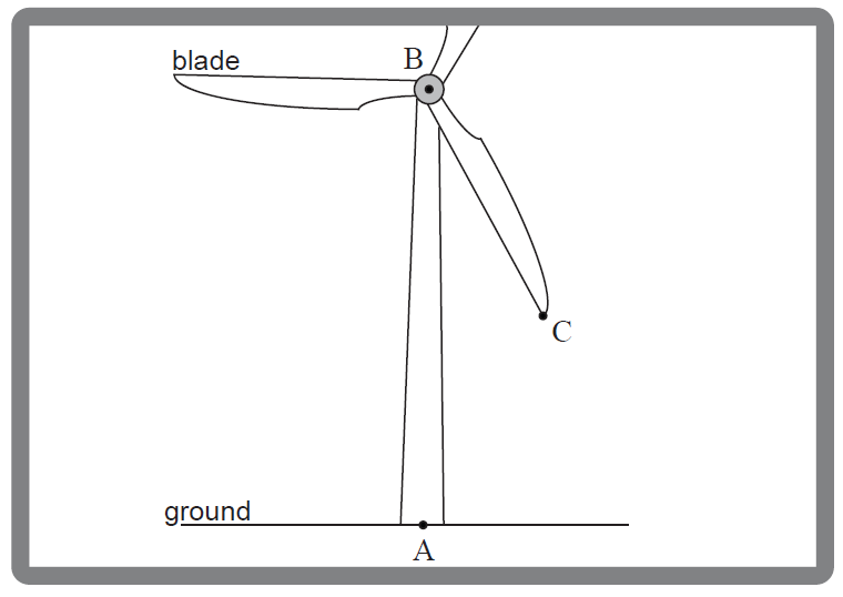 (ii) Calculate the angle, in degrees, that the blade \([BC]\) turns through in one second. [3]