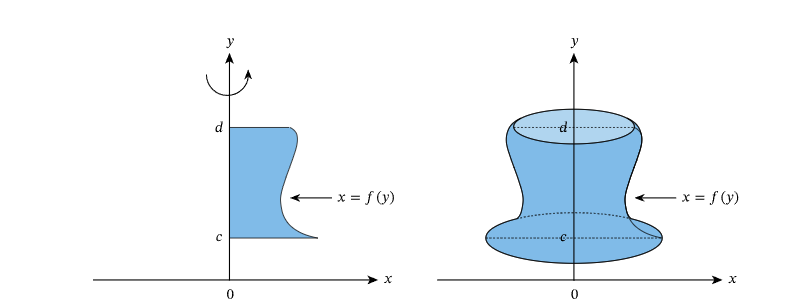 $ \boxed{\text{Volume} = \pi \int_c^d [g(y)]^2 \, dy} $