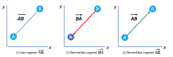 For example, if a vector starts at point \( A \) and ends at point \( B \), it is denoted as: