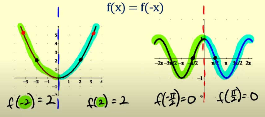 Test: \( f(-x) = \cos(-x) = \cos(x) = f(x) \)