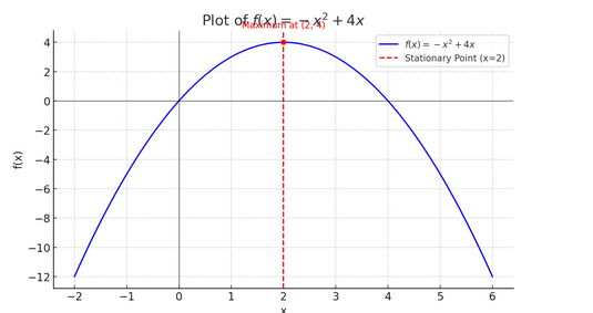 - \( x < 2 \): \( f'(1) = -2(1) + 4 = 2 > 0 \) → increasing