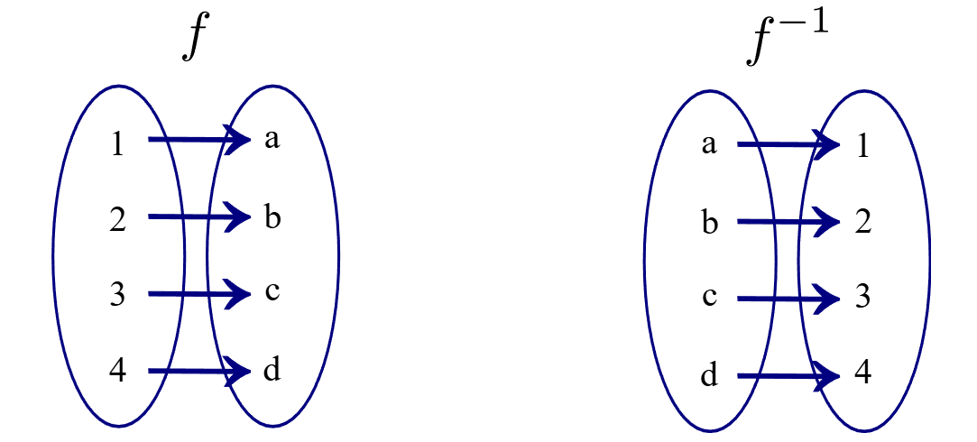 - The inverse function \( f^{-1} \) transforms that output back to the input.