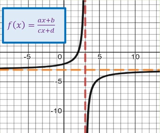 - The vertical asymptote is at \( x = -\frac{d}{c} \), provided \( c \neq 0 \).
