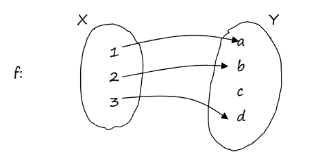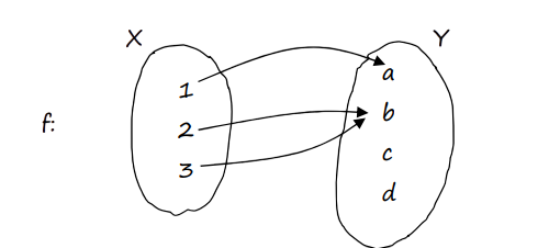 For example: $X = {a, b, c}$ and $Y = {4, 5}.$ A function from X to Y can be represented