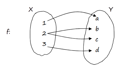Example Let $X = \{1, 2, 3\}$ and $Y = \{a, b, c, d\}$. A relation $f: X \rightarrow Y$ is defined as follows: $f(1) = a$ Is this relation a function from $X$ to $Y$? Justify your answer.