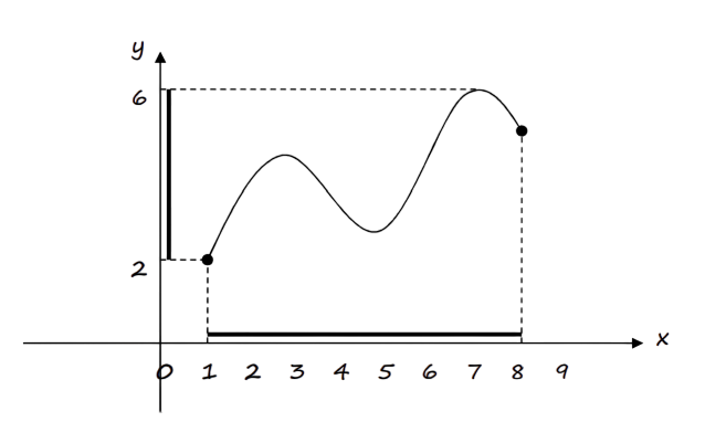 Projection on the \( y \)-axis, i.e. \( R_f: y \in [2, 6] \)