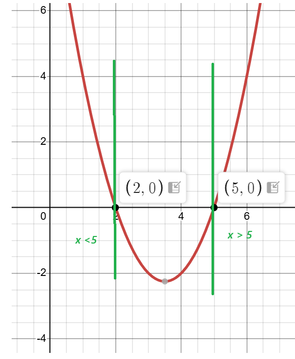 &\Leftrightarrow x = 2 \text{ or } x = 5