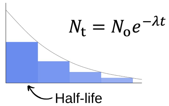 Example Suppose a certain medication degrades in the body with a half-life of 4 hours. If a patient starts with 200 mg of the drug, the amount left at time \( t \) can be modeled by: \( N(t) = 200 \cdot e^{-(\ln 2 / 4) \cdot t} \) Find the amount remaining after 10 hours: ▶️Answer/ExplanationSolution: \( N(10) = 200 \cdot e^{-(\ln 2 / 4) \cdot 10} \approx 35.36 \text{ mg} \) |