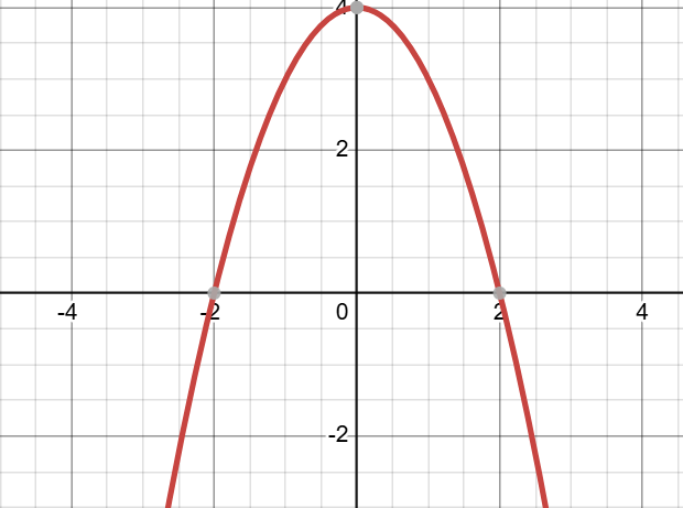 Example Sketch the graph of \( f(x) = -x^2 + 4 \) Label all key features. ▶️Answer/ExplanationSolution: