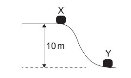 An object is released from rest at \(X\) and slides to \(Y\). The vertical distance between \(X\) and \(Y\) is \(10 \mathrm{~m}\). During the motion, \(20 \%\) of the object’s initial gravitational potential energy is lost as friction.