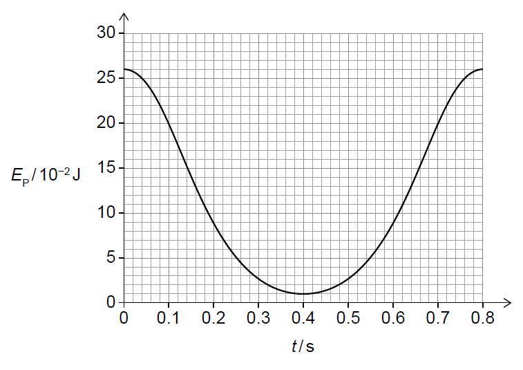 (i) From the graph, \(E_{p,\max} \approx 0.26\,J\) and \(E_{p,\min} \approx 0.01\,J\).