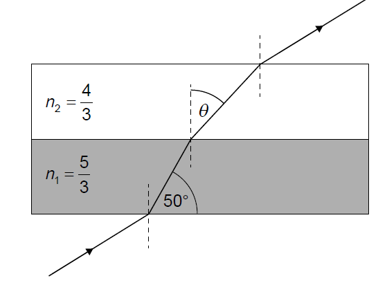 - \(\theta_1 = 50^{\circ}\) (angle of incidence with normal)