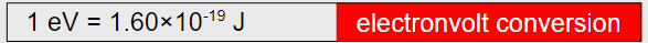 1 eV = eV = (1.60 x 10-19 C)(1V) = 1.60 x 10-19 J.