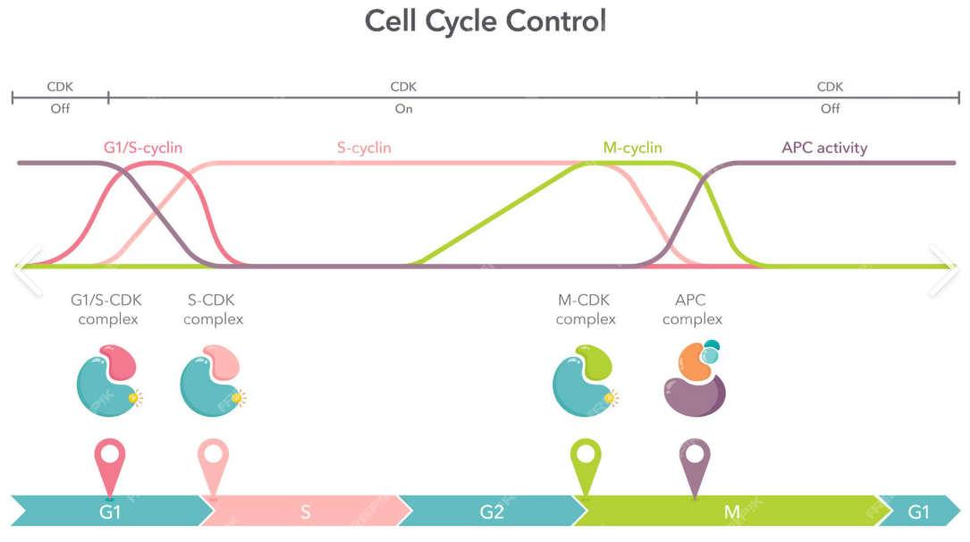 | During Mitosis | Cyclin levels control progression through mitosis |