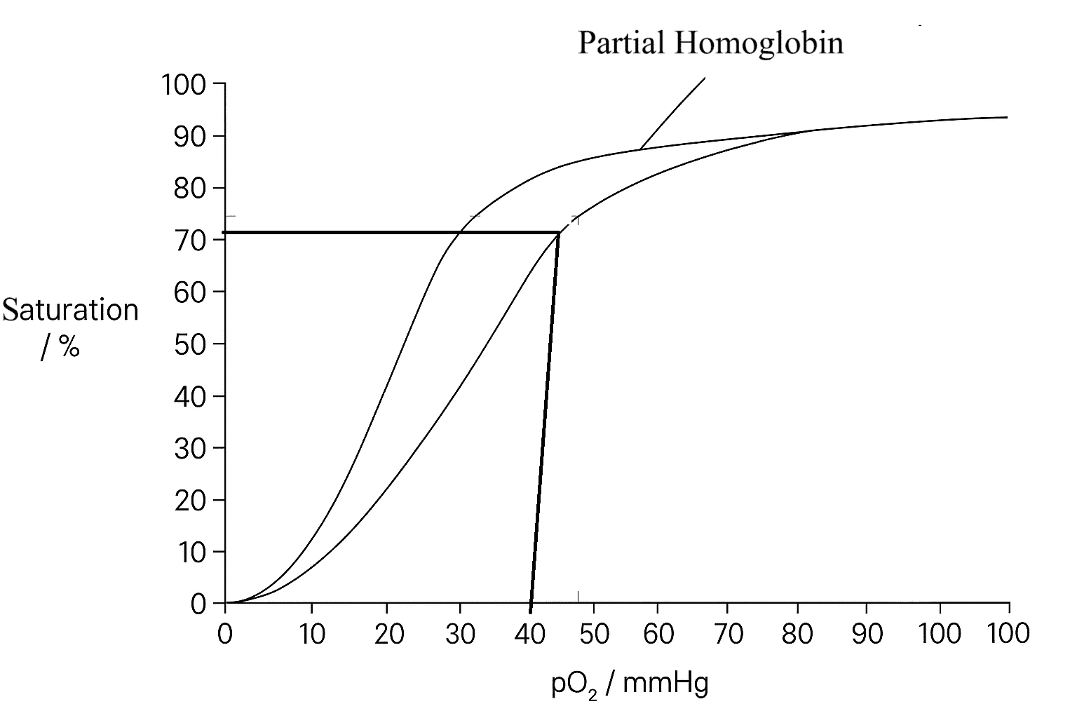 The foetal curve should be drawn: • to the left of the adult curve • with the same general sigmoidal shape