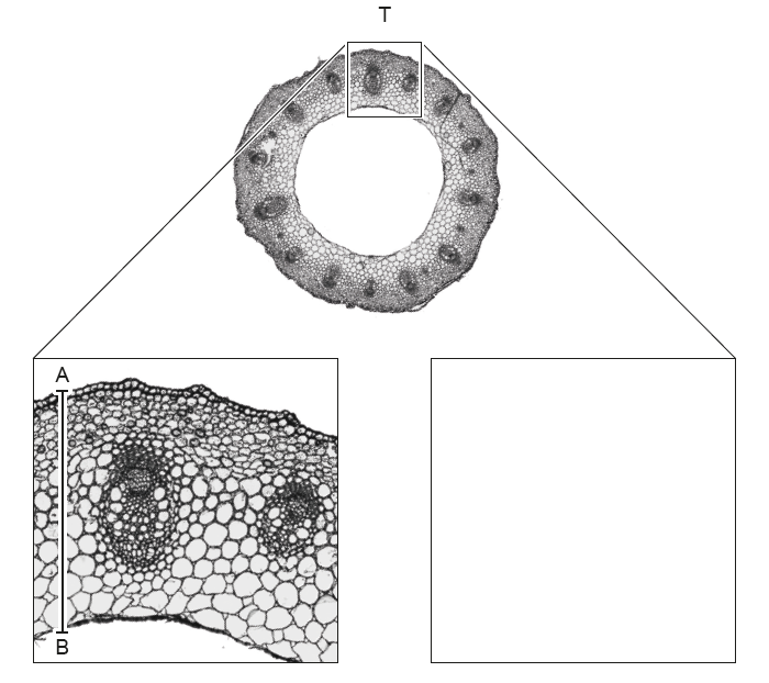 A correct plan diagram should include the following labelled tissues (no individual cells shown):