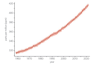 - CO₂ levels have been steadily increasing since measurements began in the late 1950s.