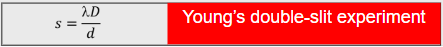 Young’s double-slit interference as given by $s =\frac{ λD}{d}$ where s is the separation of fringes, d is the