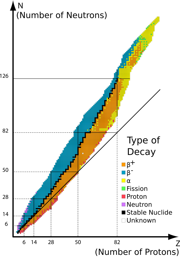 - As proton number increases, additional neutrons are required to maintain stability.