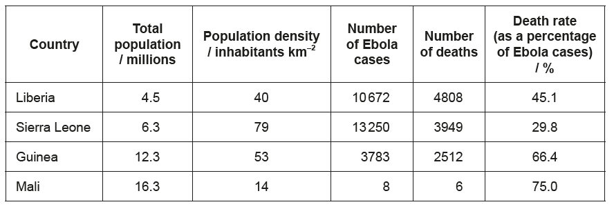 (i) the largest number of Ebola cases. [1]