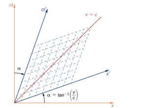 - Vertical axis (\( ct \)): Represents time, multiplied by \( c \) (speed of light) so that both axes have the same units.