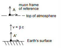 So the distance that the ground travels before the muon decays is 0.6 km . But what is the thickness of the atmosphere that the muon sees? proper length of atmosphere $=10 \mathrm{~km}$ length of atmosphere in muon frame is