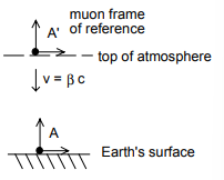 Muons are unstable particles created when cosmic rays interact with the upper atmosphere. They move at very high velocities $(\beta \sim 0.9999)$ and have very short lifetimes, $\tau=2 \times 10^{-6} \mathrm{~s}$, as measured in the lab.