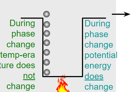 - Since the thermometer measures kinetic energy, and since the temperature doesn’t change during the phase change, the heat must be getting stored ONLY as potential energy during phase change