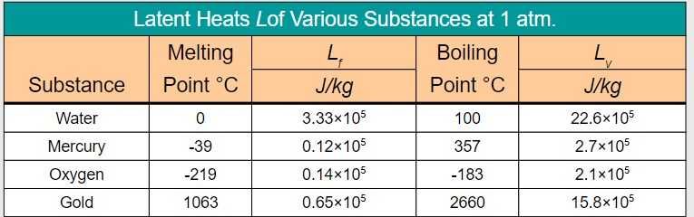 - Note that since there is no temperature change during a phase change, there is no ΔT in our formula. The units for L are (J kg-1).