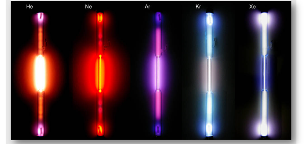When a low-pressure gas is subjected to a high voltage, the gas becomes excited and emits light.