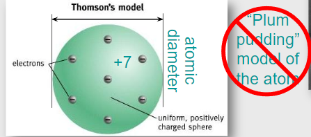 In 1897, J. J. Thomson discovered the electron and proposed the plum pudding model of the atom, in which negatively charged electrons were embedded in a diffuse sphere of positive charge.
