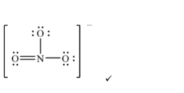 (ii) Nitrogen double-bonded to one oxygen atom and single-bonded to two others, enclosed in square brackets with an overall \(1-\) charge (resonance structures apply).