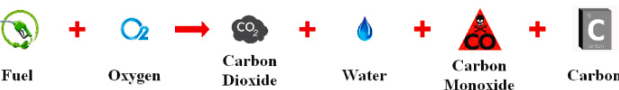 - Carbon (soot) formation: \[ \text{Hydrocarbon} + \text{O}_2 \rightarrow \text{C (s)} + \text{H}_2\text{O} \]