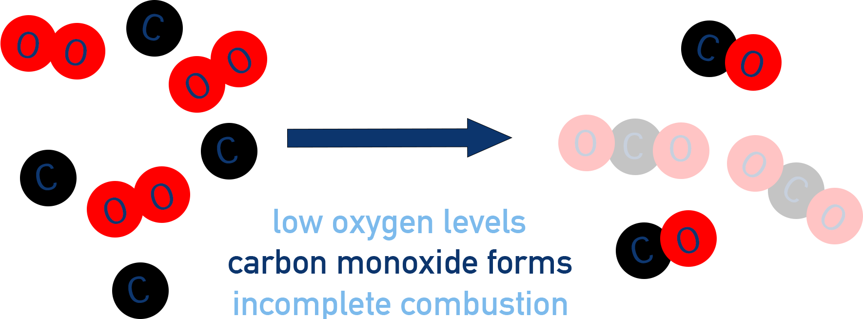 - It forms when carbon in the fuel is only partially oxidized due to a limited oxygen supply.