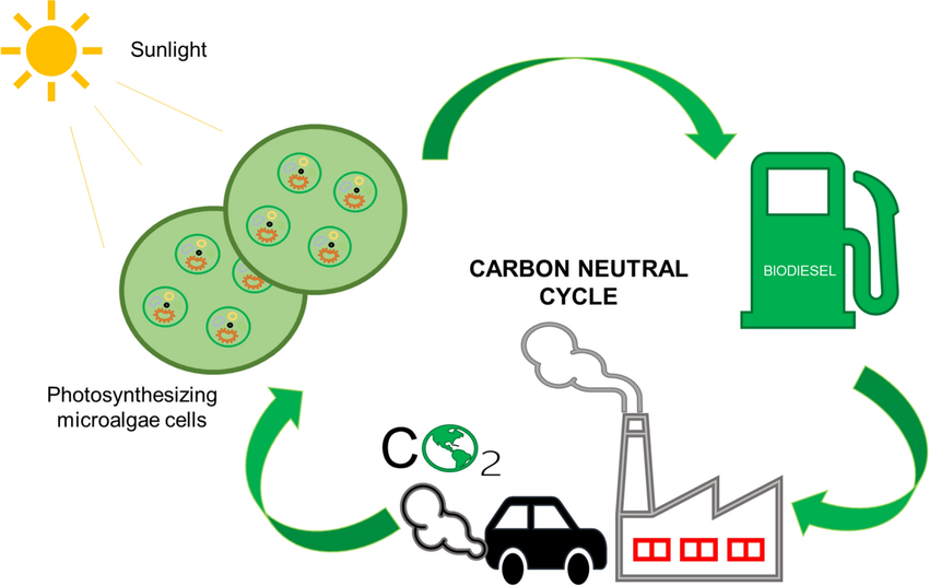 Although biofuels emit CO₂ when burned, the idea is that the amount emitted is roughly equal to the amount taken in during photosynthesis. This is why biofuels are often referred to as carbon neutral, though in practice emissions from cultivation, processing, and transport must also be considered.