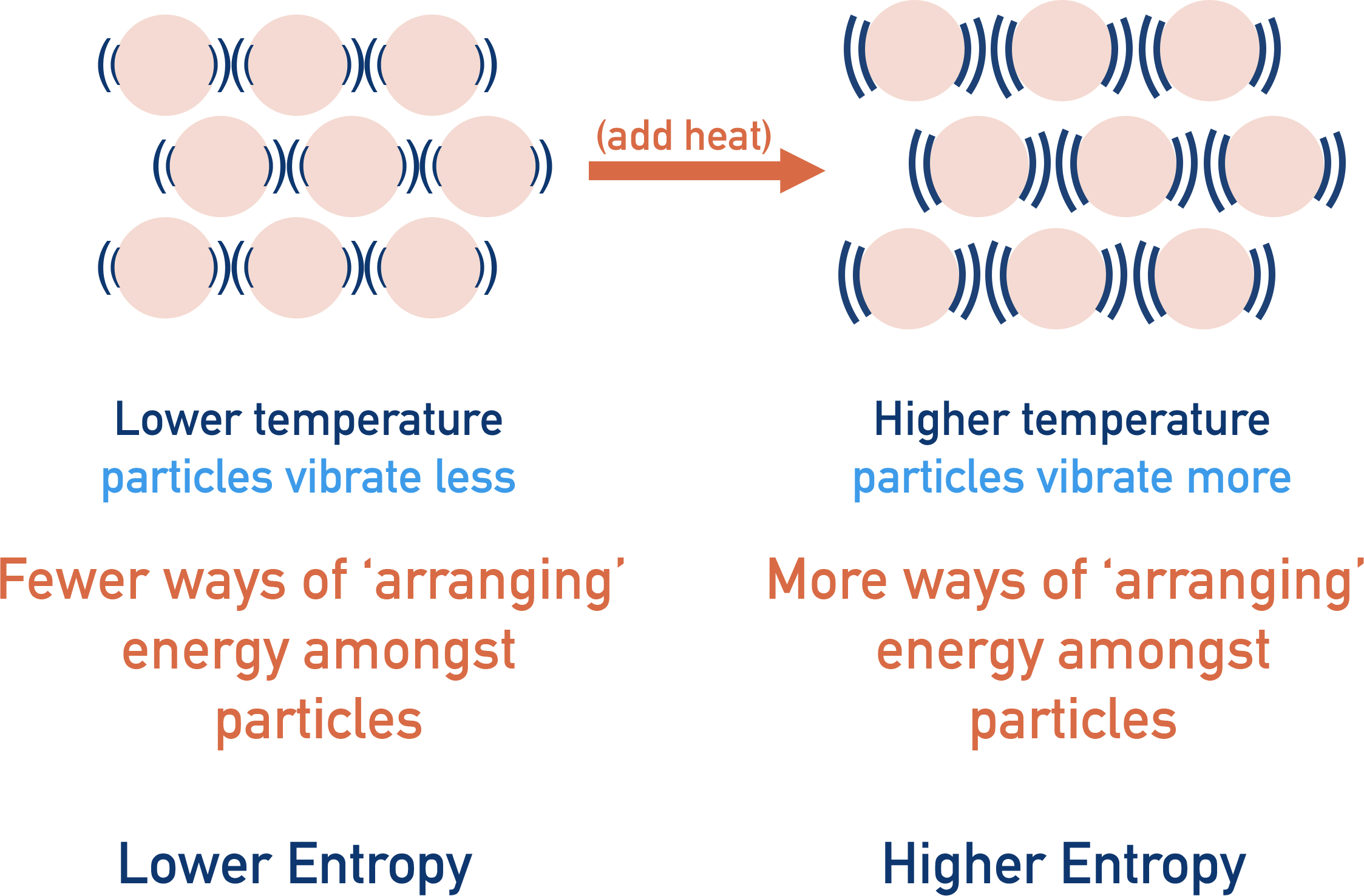 - Temperature increase: Higher temperatures increase particle motion and entropy.